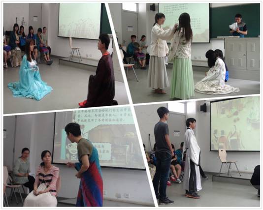 2014年5月—6月,耿喜梅老师组织我院2013级国际政治专业35名同学参观国子监和孔庙、进行大型古装情景剧的表演两项实践教学活动,使同学们在亲身体验中感受中国历史,在实践中领略传统文化。