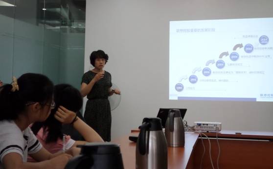 随后,赵经理向同学们讲解了企业发展与国家政策制定间的互动关系。她从联想控股的管理模式和业务发展状况出发,深入解读了公共政策如何影响行业和企业的发展。通过案例演示,赵经理详细介绍了在政府部门调研和日常工作沟通过程中,企业如何与政府进行良好的互动,把握政策动态,并就行业发展问题提出政策建议。