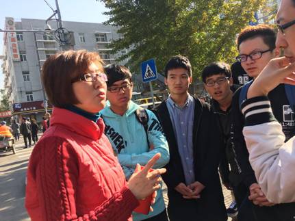 接着,社区负责人带领同学们参观千面胡同,并就社区管理服务的多方面内容与同学们进行交流。首先,负责人向同学们介绍了社区当前的“整治挖墙打洞”工作,并表示其有利于保持街道的整洁度,提高居民出行的安全性。其次,同学们分别就社区治安维稳、居民纠纷、志愿者工作、平房社区与楼房社区的管理、社区居民代表会议及党员会议、社区管理团队等方面进行了提问,并得到了负责人的详细解答。此外,负责人提及当前社区工作的几处难点:社区的停车位问题相对复杂,是当前社区工作的“顽疾”;“小巷管家”工作也由于居民相互沟通的不足也开展得较为缓慢;社区居民与物业管理单位之间的矛盾时有激化。最后,纵观社区管理的总体布局,社区工作在社区党委及居委会的领导下有条不紊地进行着,社区管理问题得到不断地解决和疏导,社区的明天也将更加美好。