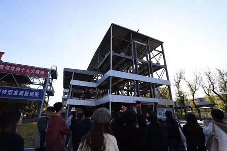 参访第一站师生们首先来到了记录首钢百年发展历史的陶楼展览馆,展厅利用视频、图片、文字、模型、实物等方式展出红色序曲、艰苦创业、风雨兼程、自强不息、浴火重生、和谐家园、领导关怀、前景展望八个部分的内容,。在首钢工作人员的讲解下,同学们全面了解了首钢建立与发展的历史,以及新时代首钢的战略转型之路。