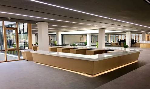 随后师生们参观了雄安新区规划展示馆和市民服务中心大厅,以“共享、便捷、绿色”为主题的市民服务中心向师生们展示了雄安新区的美好未来。中心道路不仅设有专门的无人驾驶车道,各个园区都采用高新材料、技术建造,例如建筑外观材料采用轻钢,路面采用高渗水性海绵路面,而不同功能区域之间均由电动公交摆渡联通,绿色出行的理念深入人心。