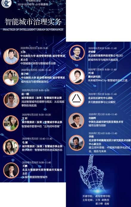 为响应学校夏季小学期教学活动安排,在落实培养方案的基础上,bv伟德国际1946根据学校通知文件要求,积极申报学校暑期小学期各类课程教学活动。其中,城市管理系申报的“智能城市治理实务”学科专题系列讲座课程于6月22日正式开课。