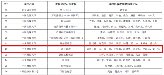 近日,中共北京市委教育工作委员会和北京市教育委员会发布了《关于公布课程思政示范项目名单的通知》(京教函〔2022〕55号),我校推荐的5门本科课程成功立项。其中,我院《社区管理》获评北京市课程思政示范课程,姜玲教授被认定为北京市课程思政教学名师,其带领的教学团队被认定为北京市课程思政教学团队,团队成员包括耿云、张剑、王红梅、温锋华、刘庆乐、罗海元、柴铎七位老师。