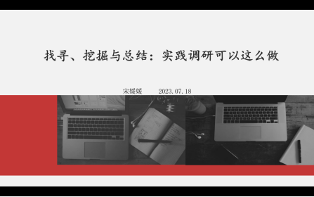 首先,毕馨雨博士结合自身调研经验,从发现一个有意思的社会现象、联系多位有经验的访谈对象、找到一个有价值的研究问题和撰写一篇有意义的调研报告四个方面为大家梳理了田野调查的思路。其次,毕馨雨博士为大家推荐了几本田野调查方面的经典著作(《街角社会》《跨越边界的社区》《小镇喧嚣》等),鼓励大家从经典中寻找答案。接着,毕馨雨博士详细为大家介绍了实践调研的实施步骤。最后,毕馨雨博士向大家讲述了如何实现田野资料与理论的碰撞,希望大家能够澄清研究对象背后的联系与机制,提炼分析出有价值的学术观念。