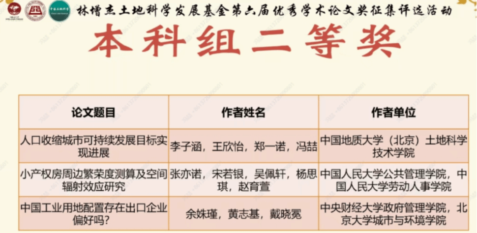 2023年6月25日,由中国人民大学公共管理学院、林增杰土地科学发展基金会同《中国土地科学》编辑部共同主办的“林增杰土地科学发展基金第六届优秀学术论文奖征集评选活动”成功举办。在我院黄志基副教授的指导下,城市管理专业余姝瑾同学撰写的论文《中国工业用地配置存在出口企业偏好吗?》荣获本科组二等奖。