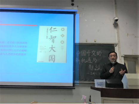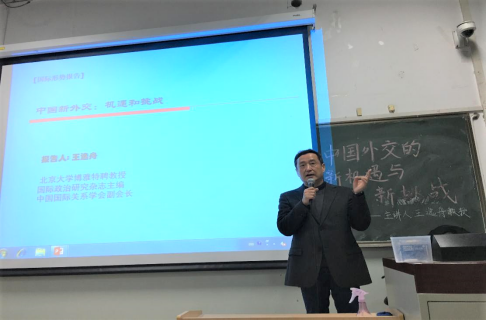 4月24日晚7点,北京大学博雅特聘教授、《国际政治研究》杂志主编、中国国际关系学会副会长王逸舟老师受bv伟德国际1946邀请,在学院南路校区主教308讲授“中国新外交:机遇和挑战”的专题学术讲座。本次学术演讲获得2019年伟德victor1946“中国特色经济学、公共管理学与政治学的文化建构”专题学术讲座项目资助。国际政治系副主任江涛老师主持讲座,bv伟德国际1946国际政治系白云真、江涛、辛平、张鹏、耿喜梅、张旗、马克思主义学院申晓若等老师,bv伟德国际1946学生党员、发展对象、入党积极分子及其他学院学生共140余名学生参会聆听,北京大学、中国人民大学等高校的本硕博学子也慕名而来,讲座现场座无虚席。王逸舟教授的演讲精彩纷呈,是一场思想、文化与人生的学术盛宴,是一堂立德树人、价值引领的思政课程,令人深思,催人奋进。
