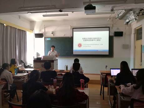 5月20日上午的讲座分为两场。毕娟研究员以《首都北京城市功能定位与全国科技创新中心建设》为题,向同学们讲授了北京城市功能定位的历史沿革,分析了北京建设全国“科创中心”的必要性和基础优势,讲解了北京“三城一区”科技创新空间规划格局,并结合本所正在进行的最前沿研究课题,为同学们研究城市问题提供了选题指导。