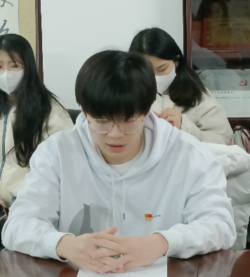 会议进行第二项内容,研究王帅、杨露、刘露涵三位同志由中共预备党员转为中共正式党员事宜。王帅、杨露、刘露涵三位同志分别向大会汇报自己在预备期的表现,包括思想动态、成绩进步、缺点不足、态度决心等方面的个人情况。