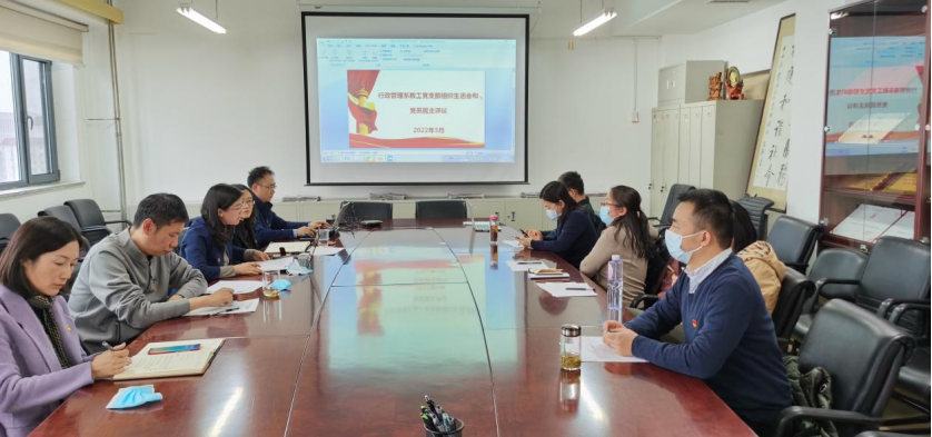 20223月18日下午,行政管理系教工党支部在主教楼1305会议室召开了支部组织生活会暨民主评议党员会议。支部联系人姜玲院长出席会议,做了点评,并对下一步工作提出了要求。支部15名党员全部出席,受新冠疫情影响9名党员现场出席, 6名党员通过腾讯会议远程参会。学院副院长于鹏、副书记李宇环以支部党员身份参加了会议。会议由支部书记曹堂哲同志主持。