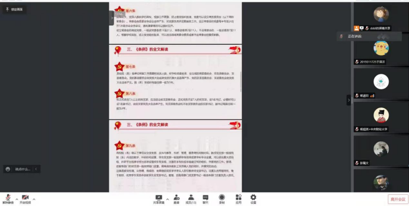行管党小组于2022年3月25日19:30在腾讯会议进行线上学习,对《中国共产党普通高等学校基层组织工作条例》进行集体研读与讨论,会议由周明迪同志主持。