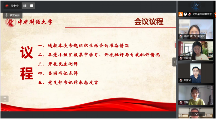为深入学习贯彻习近平新时代中国特色社会主义思想和党的十九届六中全会精神,不断推进党的建设新的伟大工程,bv伟德国际1946本科生党支部于4月24日下午线上召开了2021 年度组织生活会和民主评议党员。支部全体党员参加了会议,bv伟德国际1946党委书记吕丽出席会议并讲话。会议由本科生党支部书记李莎莉老师主持。