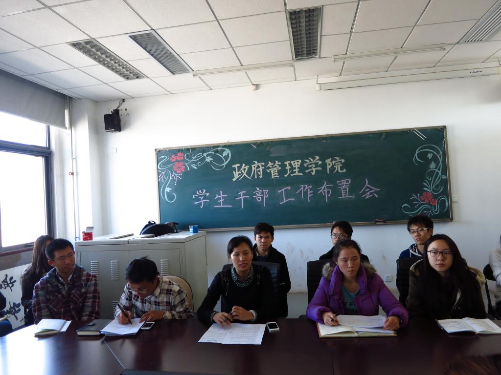 首先,孙帮谦老师对上学期团学工作进行了简要总结,并对新学期团学工作进行部署。随后,康妍妍老师对2013年班级建设的工作进行了总结,她分析了班级建家中存在的不足并对班级建设工作提出了新的要求。