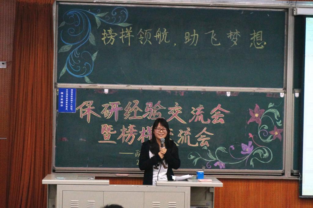 在三位外保同学交流经验后,三位直保同学也与大家分享了自身的经历。直保代表杨英站在学姐的角度向在场同学介绍了直保的条件,并语重心长地为大家的学习生活提出中肯建议。