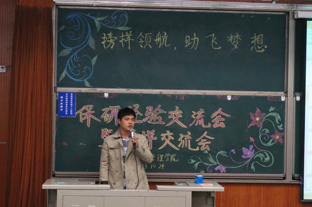 其中,作为特邀嘉宾的来自商学院支教保研的尹杨松同学首先发言,他以敏锐的视角、负责的态度向大家详细对比了支教保研与优干保研的优劣势。同时,他依据自身经验详细阐述了支教保研的原因、过程及准备工作,使得在场同学受益匪浅。