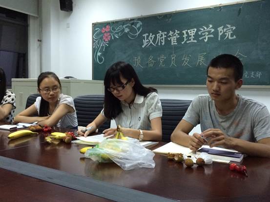 在自由陈述环节,同学们向老师袒露心声,总结了自己近一年来的进步与不足,又介绍了所在班级目前的发展状况。在对13级全体学生有了更深入的了解后,老师对在座党员提出了中肯的建议,其中着重强调了学习的重要性,也对班集体建设提出了指导性的建议,希望各位党员能发挥先锋模范和正确领导的作用。紧接着,赵粟同学就党建课题中问卷的发放、填写、回收等细节进行提问,任老师一一作出回答,王老师进行补充,同时,两位老师对课题下一步工作的开展提出了自己的想法。会议接近尾声时,王伟老师发放了有关“红色1+1”活动的相关资料,说明将在下一次会议时进行详细规划。