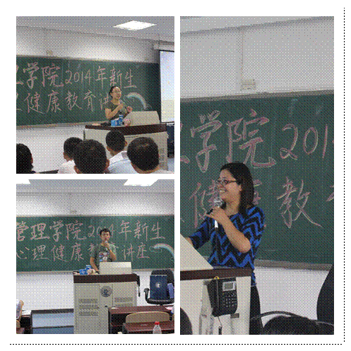 之后,我校大学生心理素质教育与咨询中心主任刘凤娥用诙谐幽默的语调向大家做了以“把握人生的新起点”为主题的心理健康教育。刘老师表示,大学生普遍具有的身心特点是“长大未成人”,即身体长大,身心未熟。一方面,大学在我们的人生之中是第一次真正意义上的“自主学习”,是对未来生活的准备过程;另一方面,大家作为新入学的同学,也面临着不少的挑战与转变。譬如新环境的适应、人际关系的挑战、对自我的重新认识和评价、处理异性交往和情感挫折方式。最后,老师提出:“快乐的度过大学生活需要两个前提。这两个前提便是正确的人生观、价值观,以及自我负责的意识和精神。”刘老师诙谐幽默、入木三分的讲授方式赢得了现场同学的阵阵掌声。