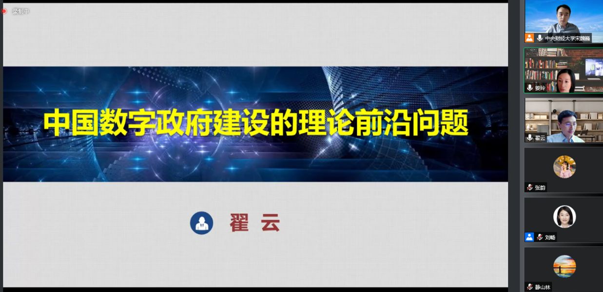 2022年6月15日上午,我院“为公讲堂”系列学术讲座——“中国数字政府建设的理论前沿”通过腾讯会议顺利在线举办。中央党校(国家行政学院)公共管理部研究员翟云教授受邀作专题报告,来自校内外百余名专家学者、学生参与交流讨论,院长姜玲教授与会开展对话评议。讲座由宋魏巍副教授主持。