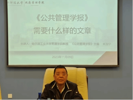2023年11月9日上午,bv伟德国际1946主办的“为公讲堂”第42期讲座在学术会堂606会议室成功举行。哈尔滨工业大学管理学院教授、《公共管理学报》主编米加宁受邀作“《公共管理学报》需要什么样的文章”专题讲座。本次讲座由bv伟德国际1946院长姜玲教授主持,学院部分师生参与了讲座。